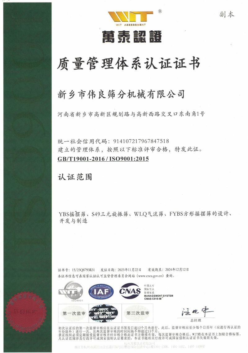 質(zhì)量管理體系認(rèn)證證書(shū)